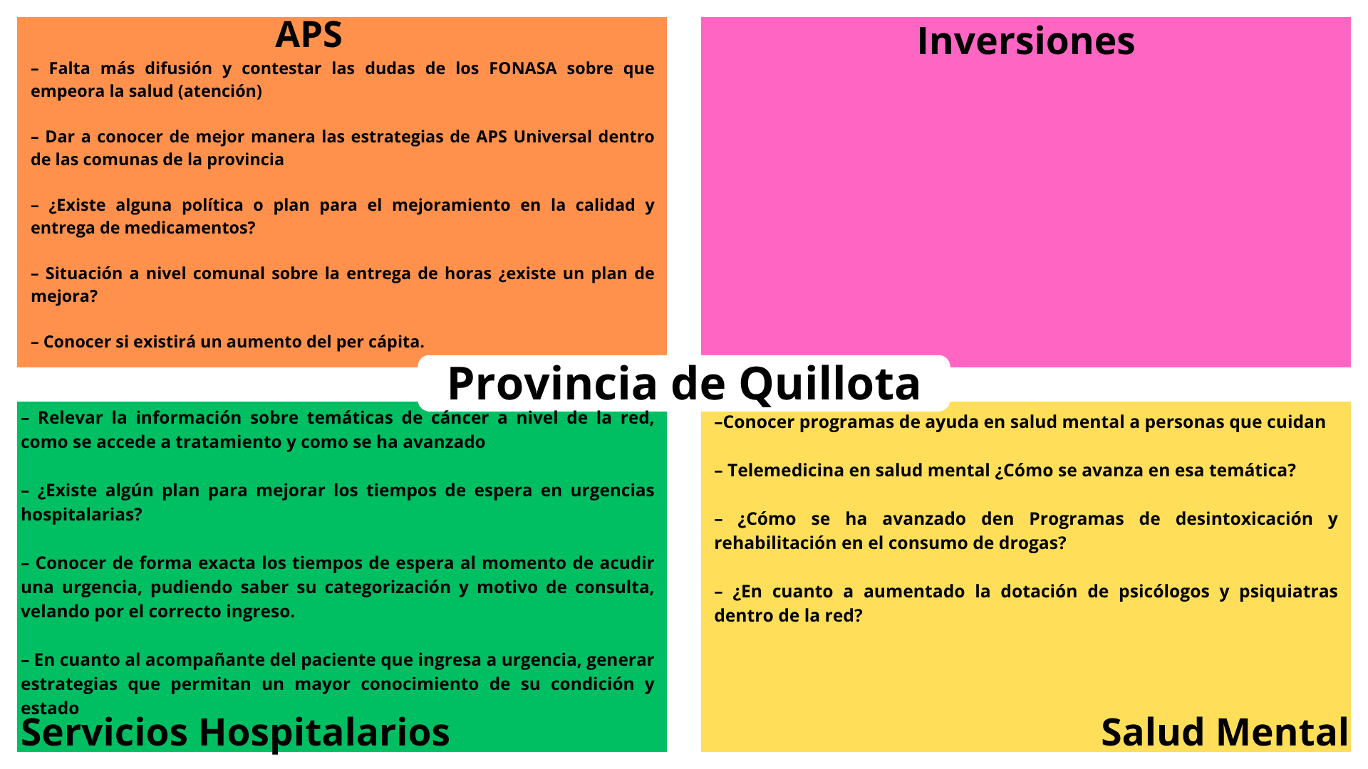- Imágenes y cuadro resumen de las temáticas levantadas por la comunidad.: