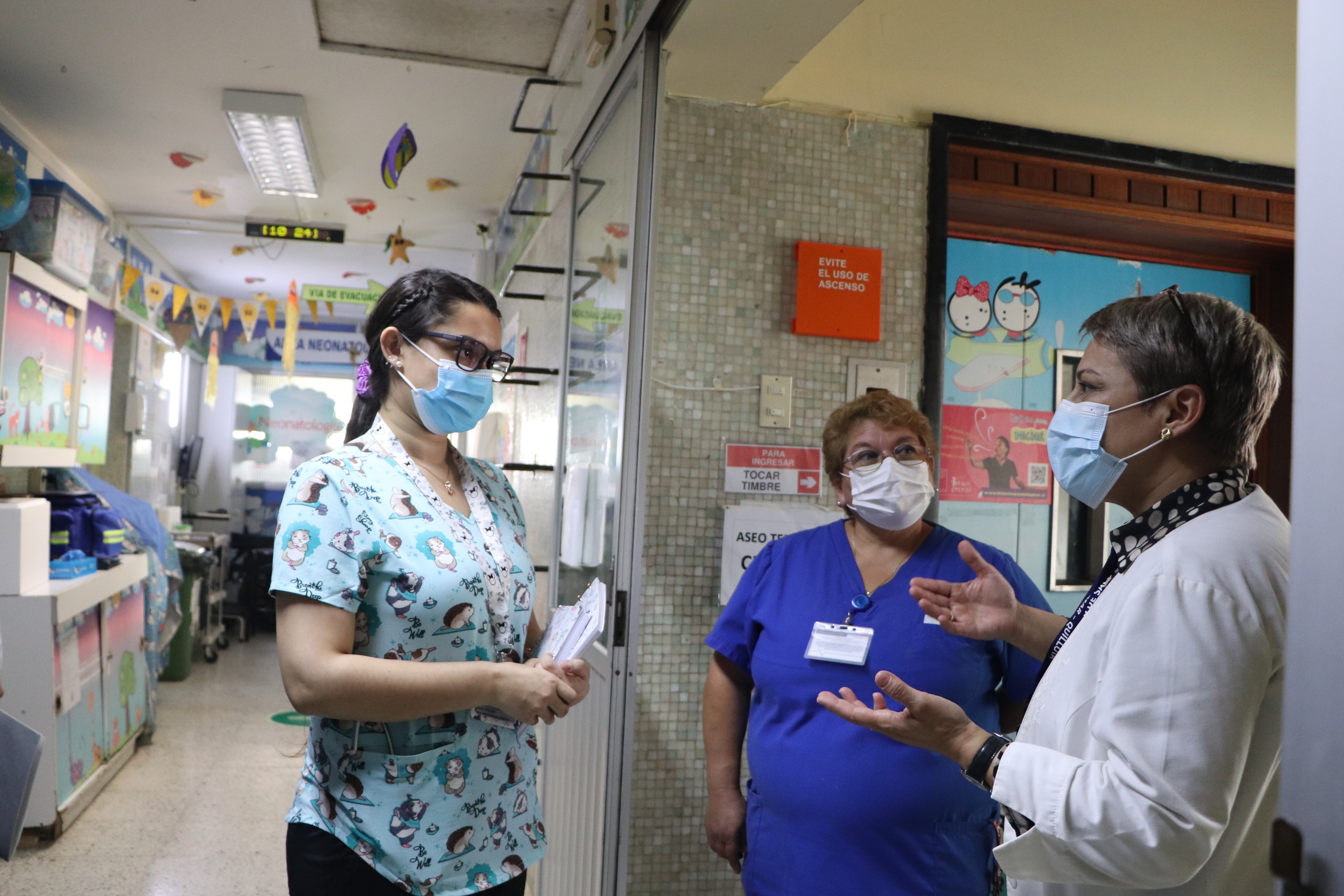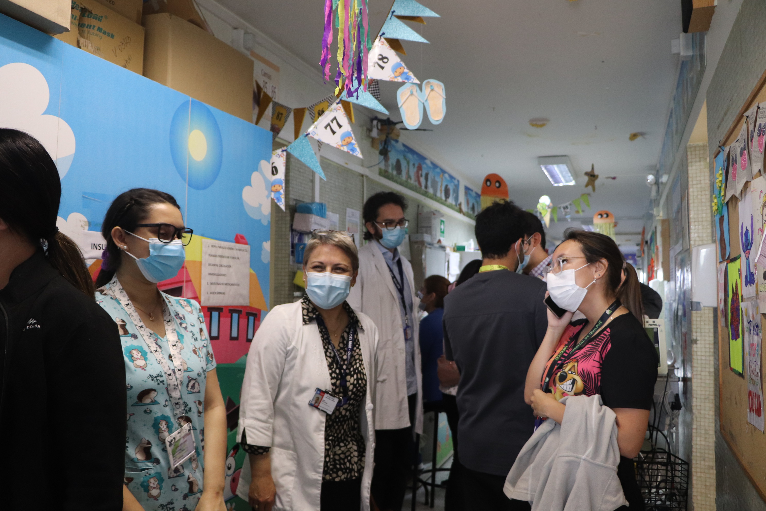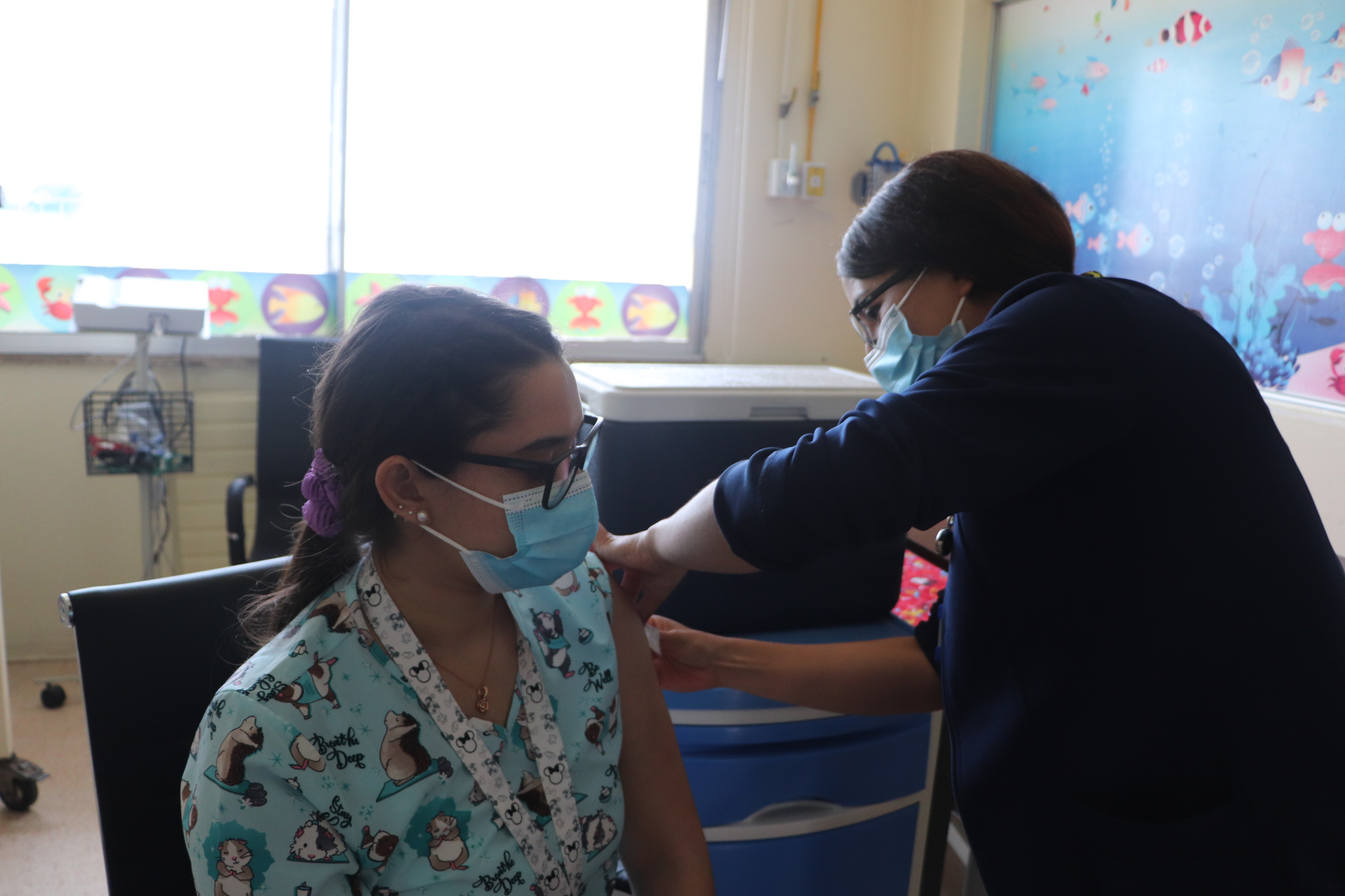 En el marco de la campaña de vacunación de refuerzo con dosis bivalente contra el SARS COV 2, el Hospital de Quilpué ha continuado inoculando a todo el personal de salud, uno de los grupos objetivo establecidos para esta nueva convocatoria, junto también a la comunidad usuaria. Para conocer en terreno el proceso de vacunación y las motivaciones de los funcionarios y funcionarias, la Subdirectora Médica del Servicio de Salud Viña del Mar Quillota, Dra. Dafne Secul, junto al Dr. Pedro Duran, visitaron el Servicio de Pediatría, donde el equipo de vacunación realizó la inoculación in situ, como parte de la estrategia de asistir a cada uno de los servicios clínicos y unidades administrativas, para incentivar que el personal concrete la 5a dosis de refuerzo.