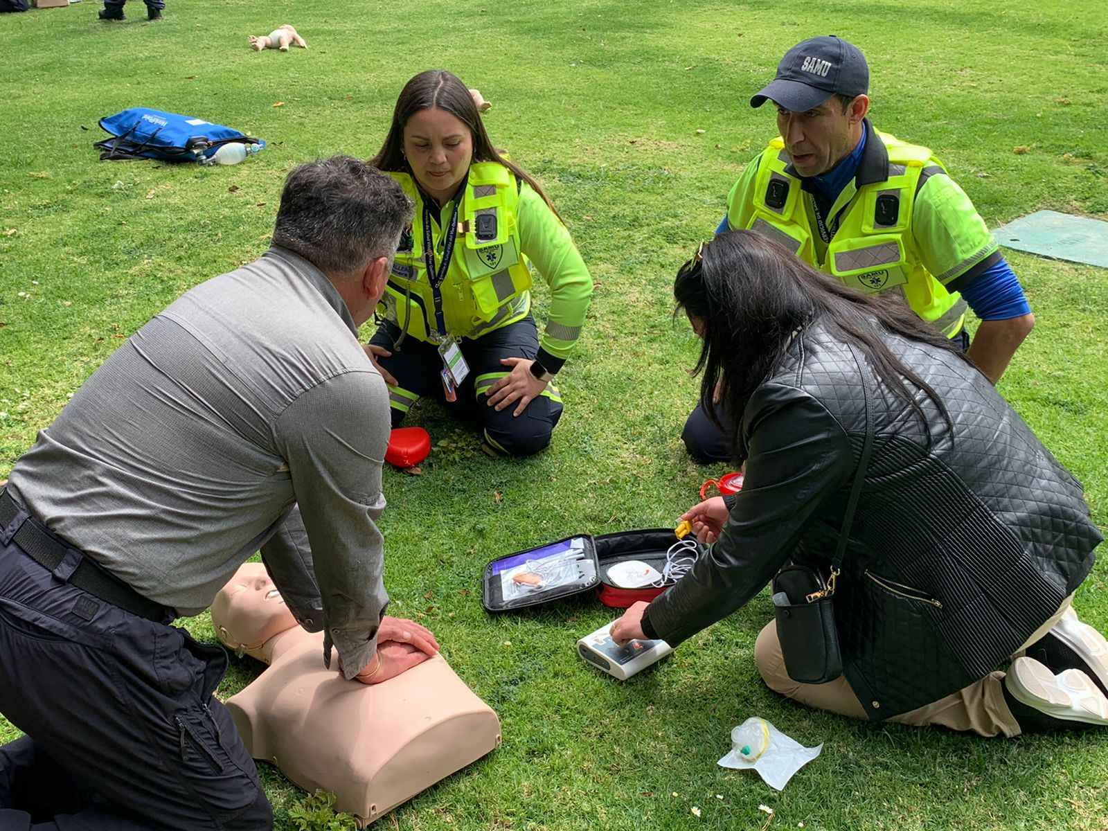 Así lo indicó el Dr. Erich Liebig, Médico Interventor SAMU: “Es nuestra responsabilidad compartir estas herramientas y destrezas adquiridas con la comunidad y otras instituciones a través de actividades de extensión, y eso es lo que precisamente se ha fortalecido en este equipo, poner todos nuestros conocimientos y habilidades a disposición de la comunidad, para tener entrenamiento de primeros respondedores, entre todos quienes laboramos en el ámbito de la función pública, para saber cómo actuar y qué hacer ante una situación grave”.
